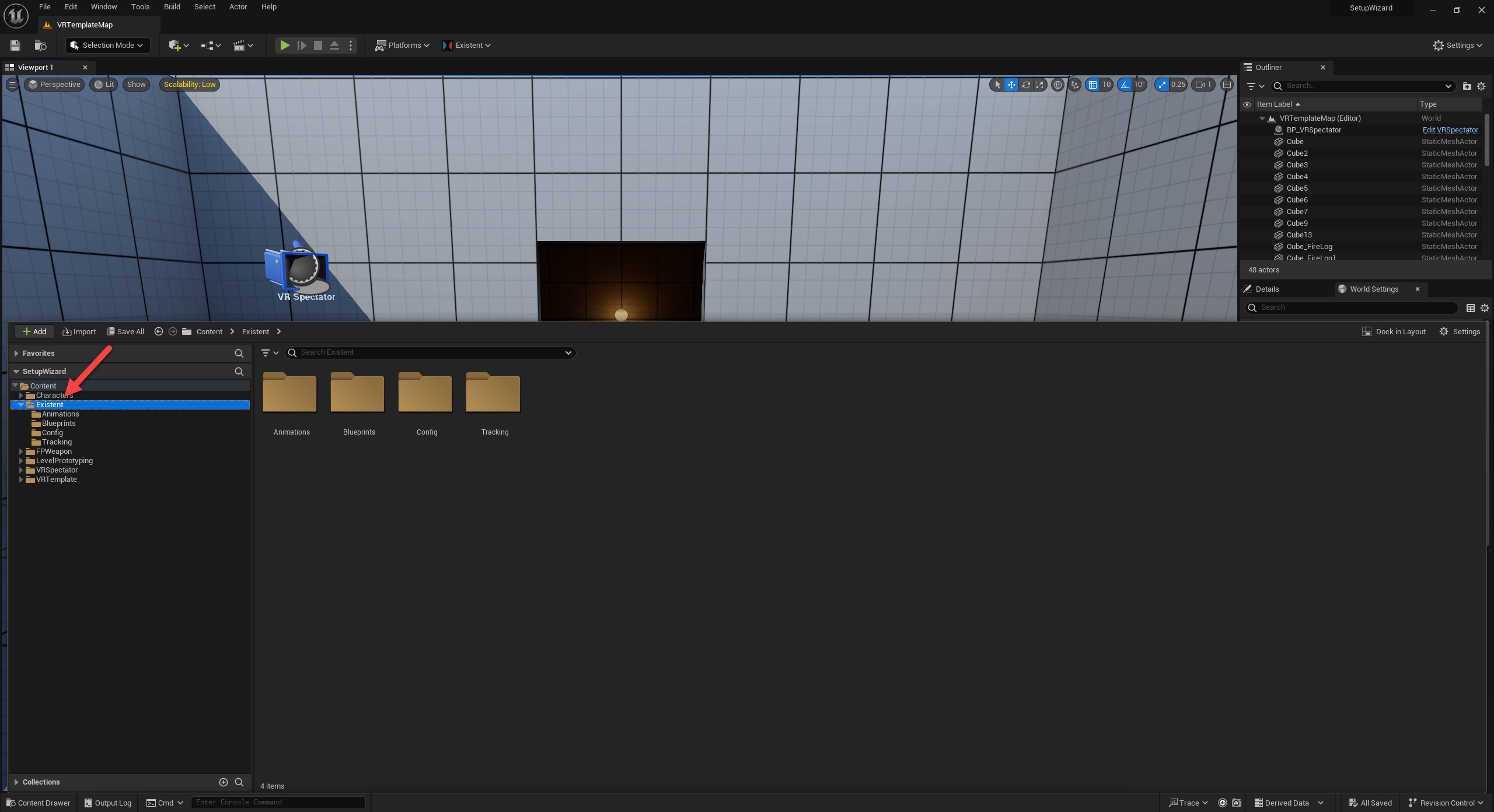 When the editor has restarted close the setup wizard tab. Inside Content -> Existent you will find all the assets created by the setup wizard.